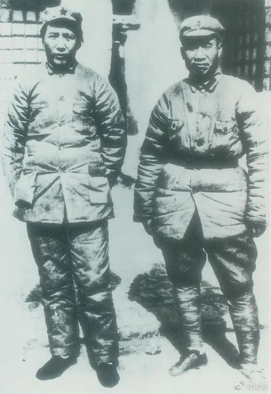 1937年7月7日,盧溝橋事變爆發(fā)。8日,中共中央通電全國,號召結成民族統(tǒng)一戰(zhàn)線抵抗日本侵略者。圖為1936年冬毛澤東和朱德在陜北。