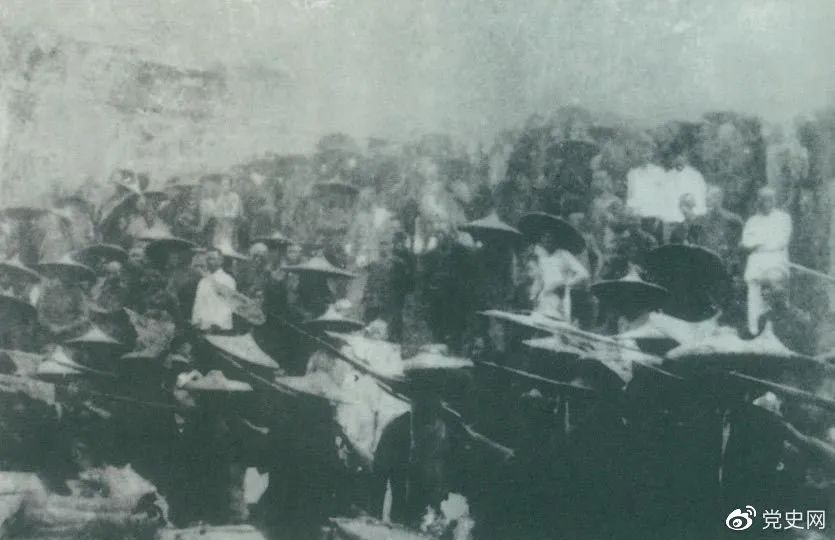 1926年7月9日,國民革命軍開始北伐。兩天后,北伐軍的先頭部隊葉挺獨立團(tuán)攻占了長沙,然后向武漢進(jìn)攻。一路上,迅猛發(fā)展的農(nóng)民運動有力地配合了北伐戰(zhàn)爭。在湖南、江西、湖北,農(nóng)民運動越來越引人注目。這是支援北伐戰(zhàn)爭的農(nóng)民自衛(wèi)軍。
