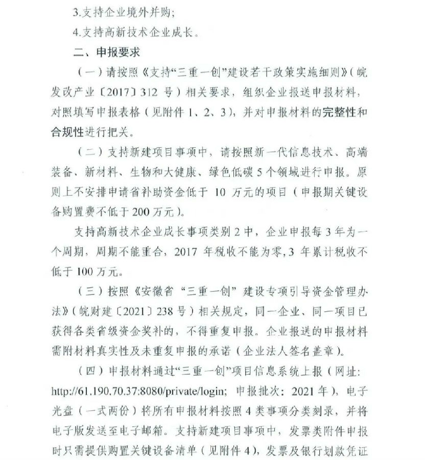 2021年度安徽省支持“三重一創(chuàng)”建設(shè)若干政策相關(guān)事項(xiàng)申報(bào)工作開(kāi)展