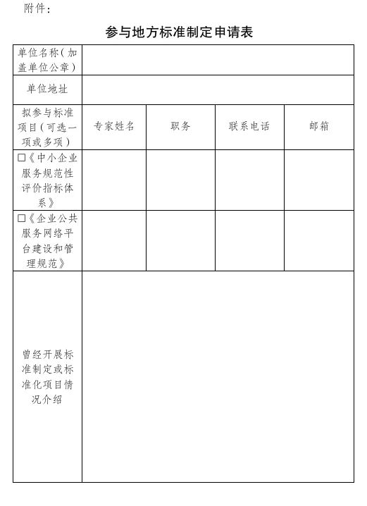 附件:參與地方標(biāo)準(zhǔn)制定申請(qǐng)表