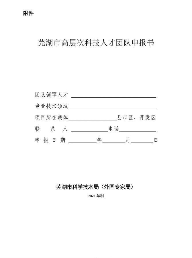 關(guān)于蕪湖市2021年度第二批高層次科技人才團(tuán)隊(duì)項(xiàng)目申報(bào)的通知