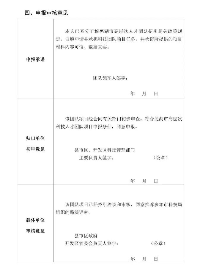 蕪湖市高層次科技人才團(tuán)隊(duì)申報(bào)書