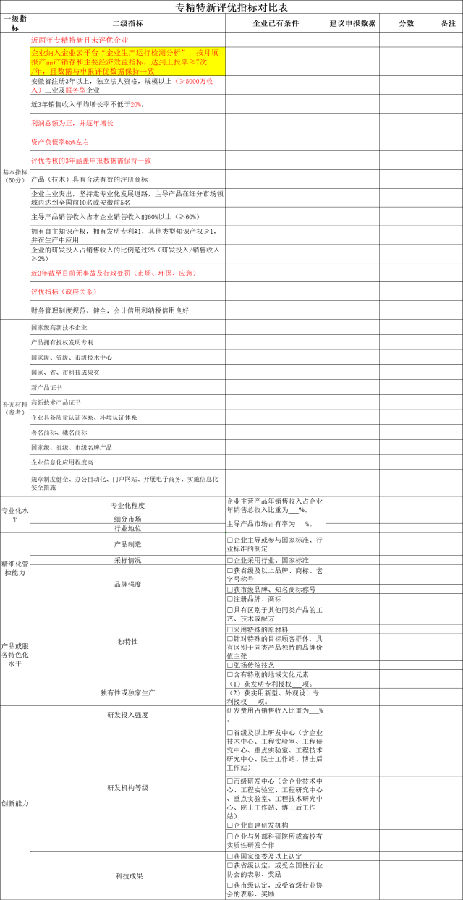 最后,附上專精特新評(píng)優(yōu)指標(biāo)對(duì)比表