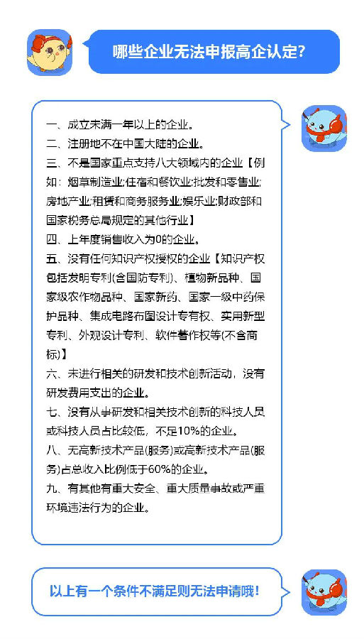 1.當(dāng)年申報的知識產(chǎn)權(quán)當(dāng)年申報高企不予認(rèn)可;也就是說,2021年申報獲批或授權(quán)的知識產(chǎn)權(quán),不能申報2021年的高企。