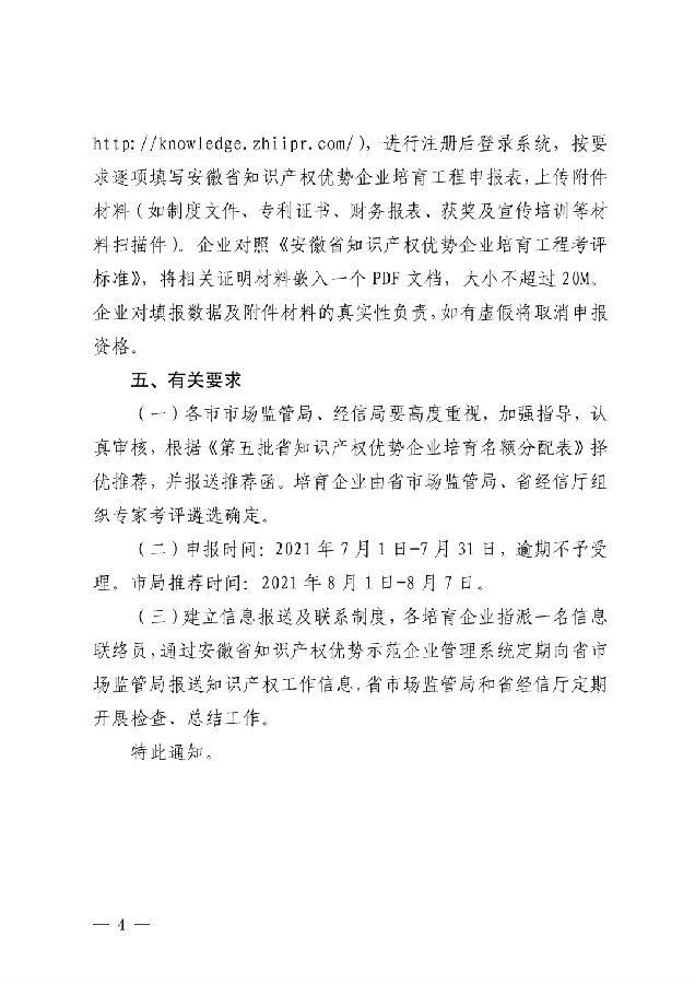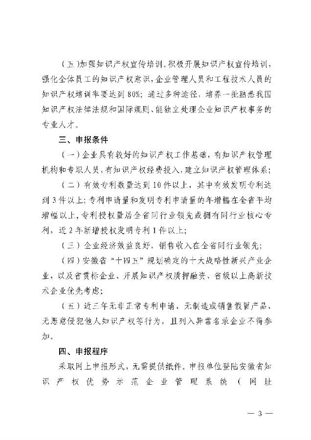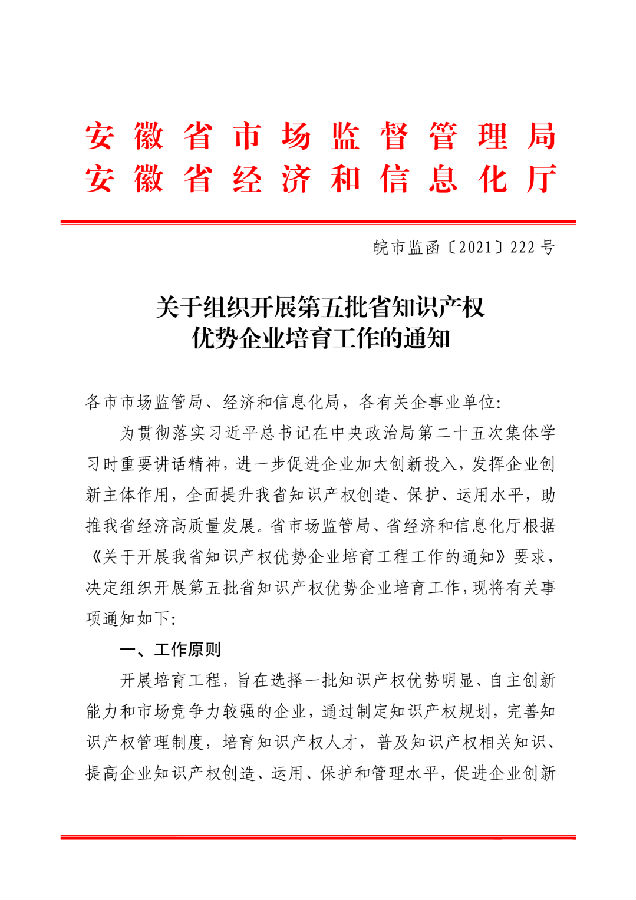 第五批安徽省知識(shí)產(chǎn)權(quán)優(yōu)勢(shì)企業(yè)培育工作開(kāi)展-共200個(gè)名額